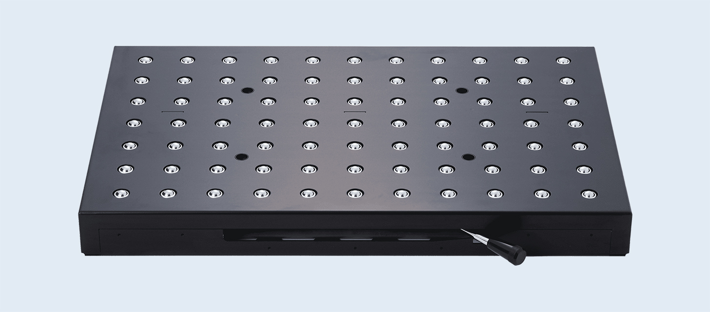 設(shè)置時(shí),通過對設(shè)備臺面進(jìn)行方槽加工,就可進(jìn)行夾具、模具、工件的輸送和定位。
