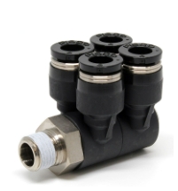 節(jié)省空間:四聯(lián)歧管接頭的設(shè)計(jì)較為緊湊,相比多個(gè)單獨(dú)的接頭,能夠節(jié)省安裝空間,使氣動系統(tǒng)的布局更加簡潔、整齊,尤其適用于空間有限的場合。